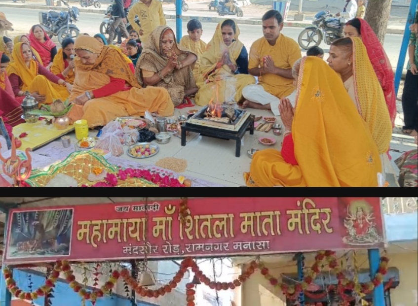 मनासा। आज दिनांक 18 जनवरी रविवार को गायत्री शक्तिपीठ मनासा के सहयोग से प्रज्ञा मंडल और मनासा की महिला मंडल द्वारा नगर में फेल रही GBS जैसी महामारी से निजात पाने ओर पर्यावरण शुद्धि शांति के लिए प्रातः काल मनासा के रामनगर स्थित सीतला माता जी मंदिर प्रांगण में हवन का आयोजन किया गया। गायत्री परिवार व नगर की महिलाओं द्वारा परिवारजनों के साथ वैदिक विधि विधान से यज्ञ कुंड में आहुतियां दी गई, जिसका उद्देश्य नगर में फेल रही GBS जैसी महामारी से निजात पाना व पर्यावरण शुद्धिकरण संवर्धन और विश्व शांति सदाचार आदि है। हवन के समय बड़ी संख्या में नगर की महिलाएं व नगर वासी मौजूद रहे सभी ने मातारानी के दर्शन कर क्षेत्र वासियों के लिए मंगल कामनाएं की।